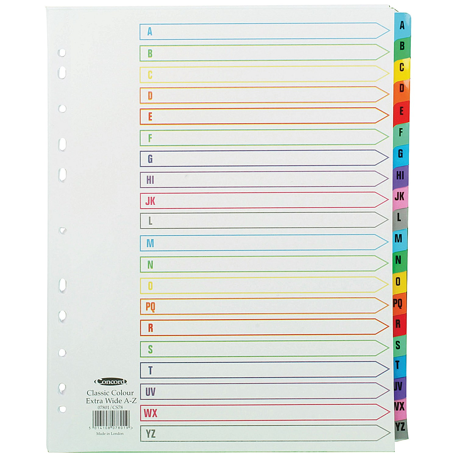 Concord Index A-Z A4 Extra Wide Multicoloured Mylar Tabs