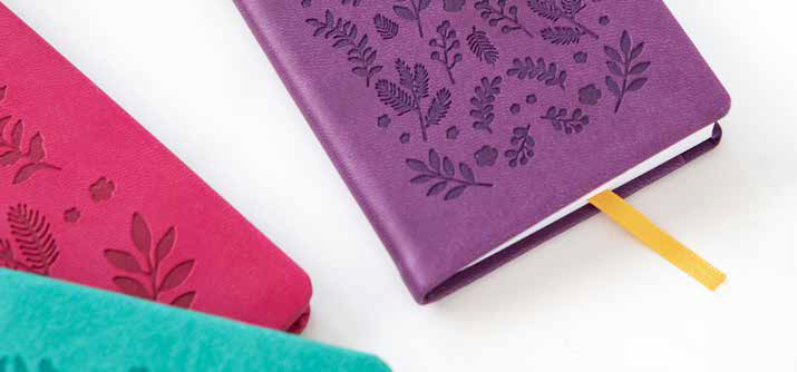 The smooth soft-touch covers feature intricate, deeply embossed, floral designs, adding a whimsical touch to your days.