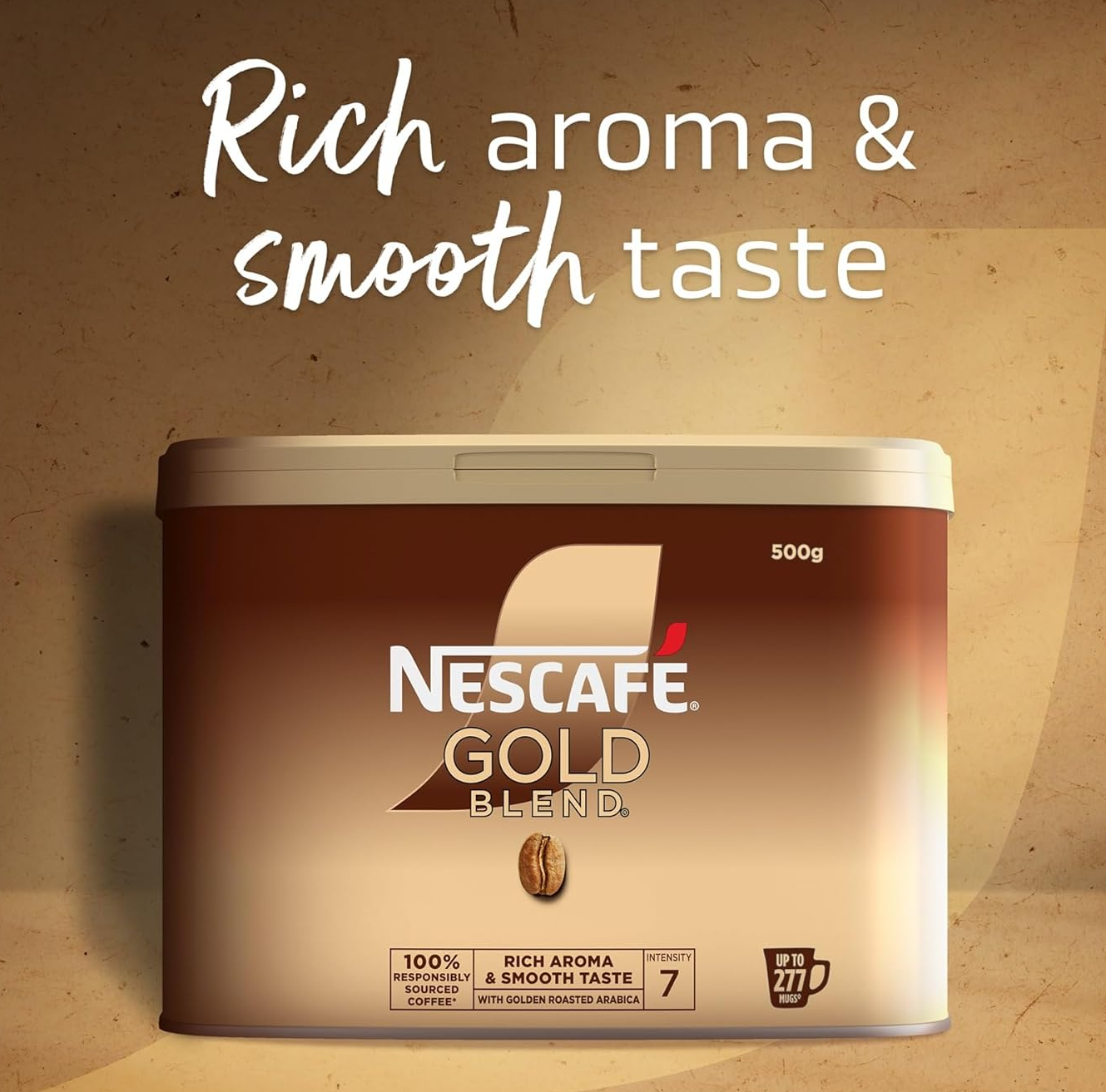 Nescafe Gold Blend is made from mountain-grown Arabica beans, ground 10 times finer to unlock their hidden taste and rich aroma. Carefully selected, medium-roasted and freeze-dried to lock in flavour, this simple to make instant coffee has a full and delicious taste. Intensity 7. Nescafe plan work with coffee farmers to support them in through providing higher-yielding, climate-resistant crops, protecting soil health and protect the future of coffee farming for everyone.