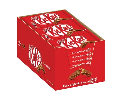 Nestle have spent years perfecting their recipe for four finger Kitkats: fingers of slender wafer are sandwiched together with chocolate cream and coated with a layer of smooth milk chocolate. Light yet luxurious, these KitKats combine crunch and softness in a yummy treat. With no artificial colours, flavours or preservatives this is the perfect solution for that mid-afternoon dip