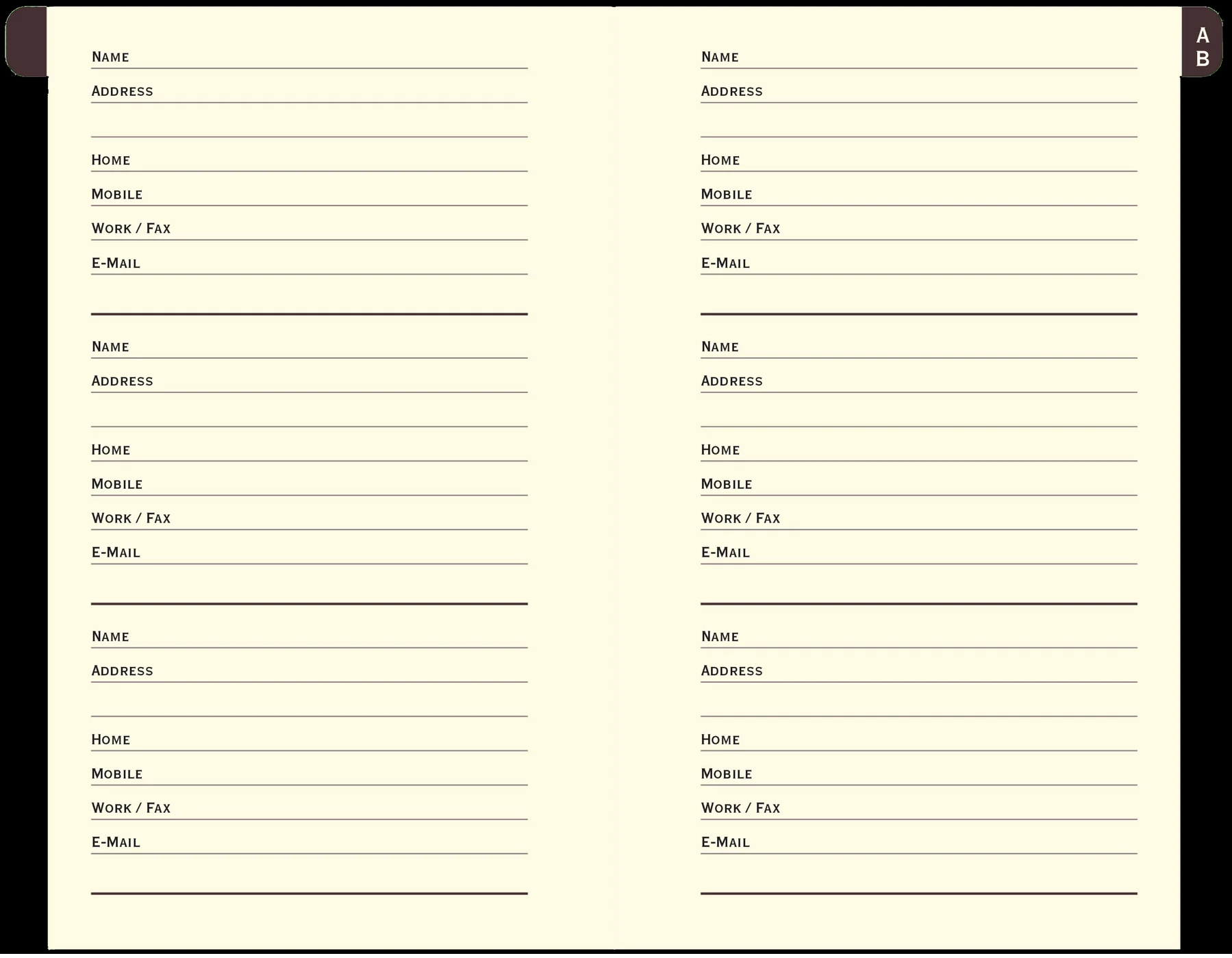 Address book measures 4-1/4” wide x 5-3/4” high.