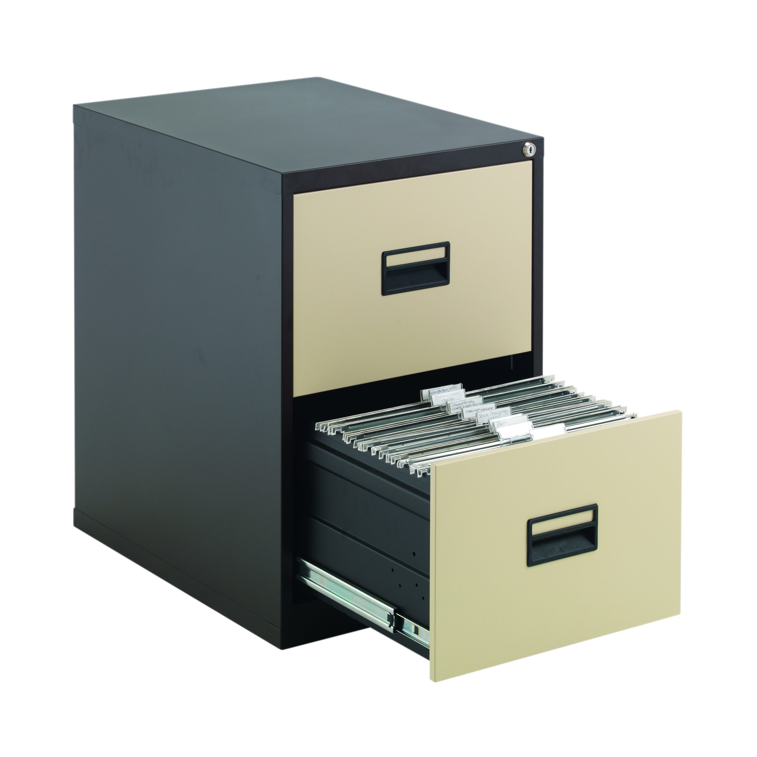With drawers that are 100% extendable for full access to the contents, these 2 drawer filing cabinets have a fully welded construction and lockable doors for use in virtually any environment. Suitable for Foolscap files, the unit also benefits from an anti-tilt system that only allows one drawer to be opened at a time and has plastic inset drawer handles incorporating a card holder for easy identification and labelling. Each drawer has a weight capacity of 40kg