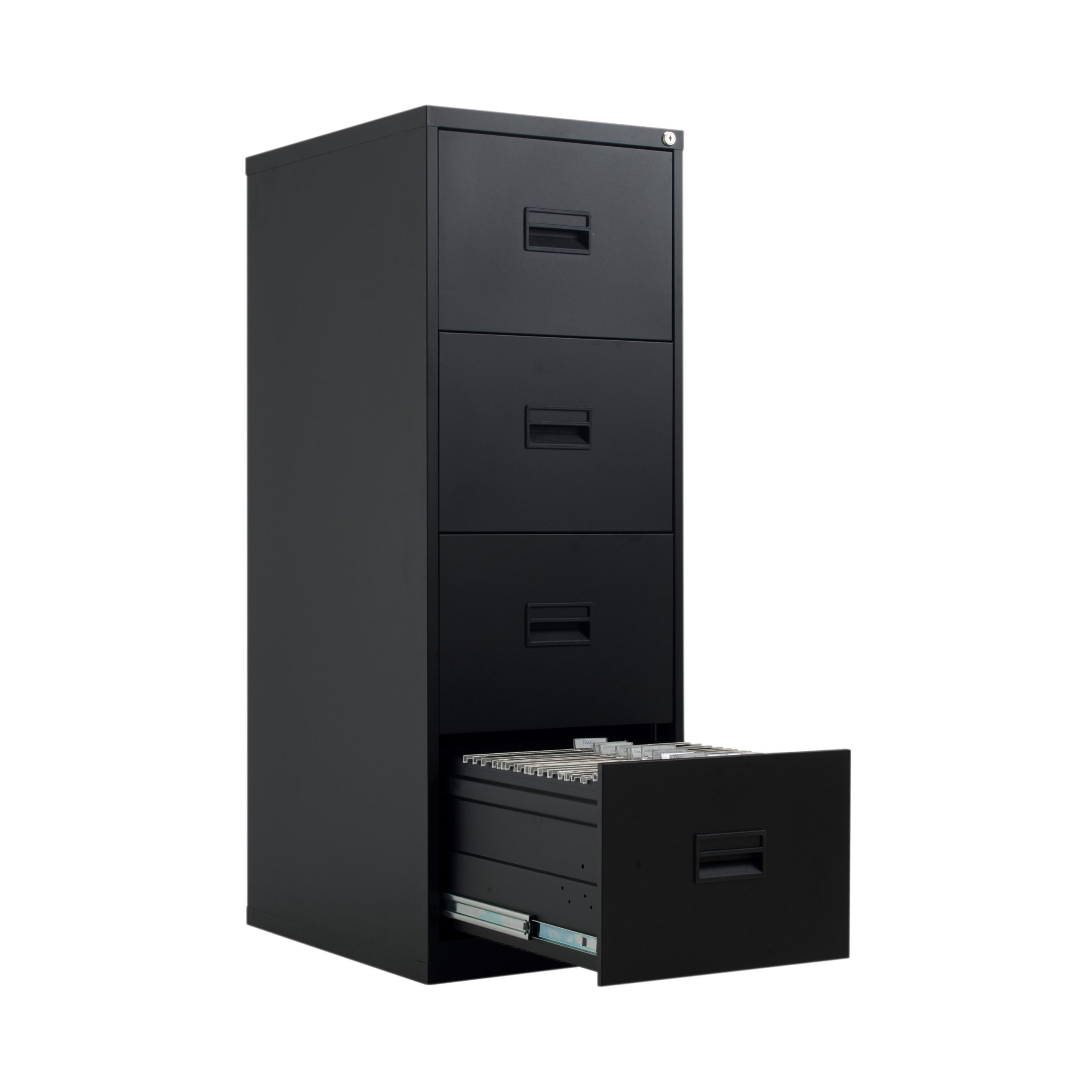 With drawers that are 100% extendable for full access to the contents, these 4 drawer filing cabinets have a fully welded construction and lockable doors for use in virtually any environment. Suitable for Foolscap files, the unit also benefits from an anti-tilt system that only allows one drawer to be opened at a time and has plastic inset drawer handles incorporating a card holder for easy identification and labelling. Each drawer has a weight capacity of 40kg