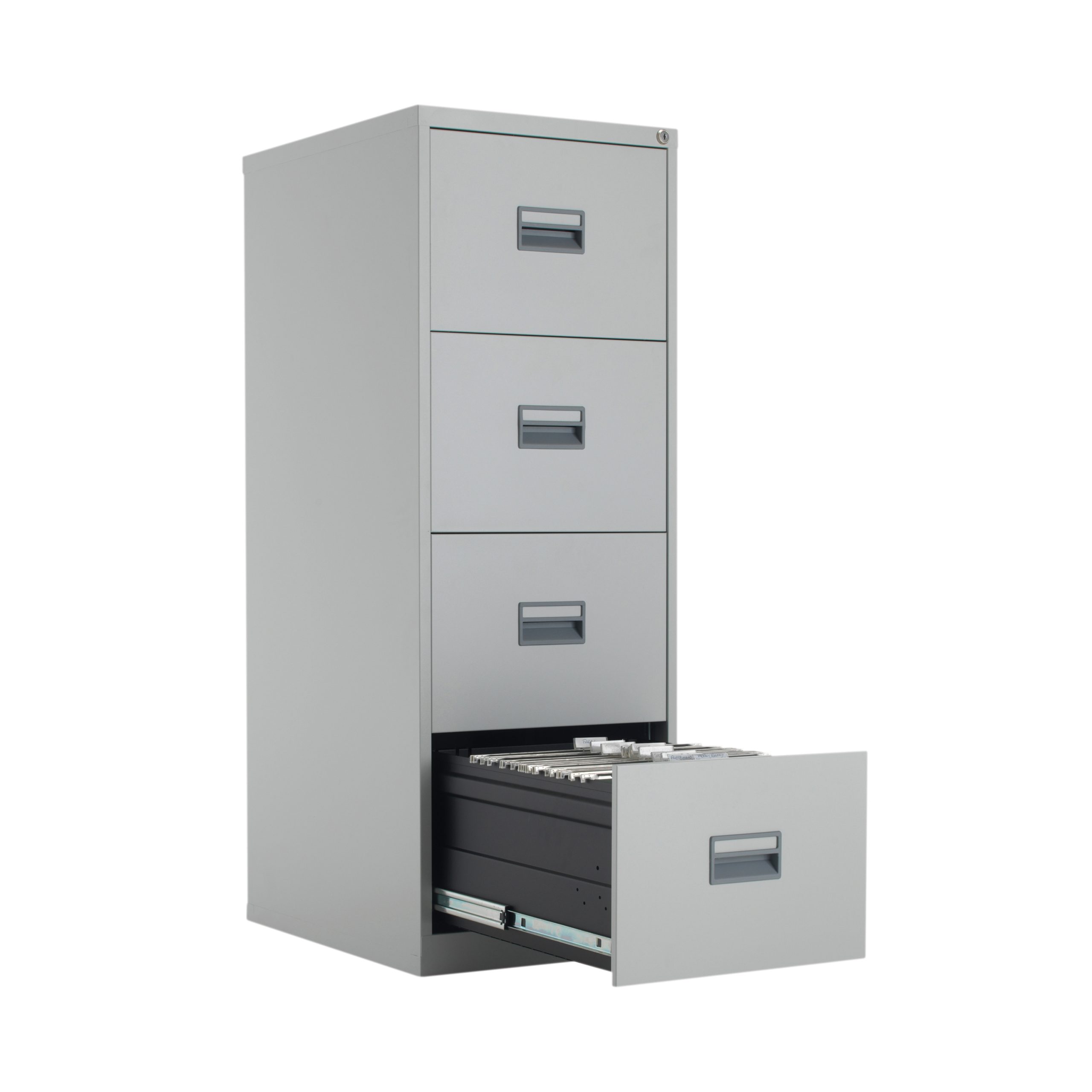With drawers that are 100% extendable for full access to the contents, these 4 drawer filing cabinets have a fully welded construction and lockable doors for use in virtually any environment. Suitable for Foolscap files, the unit also benefits from an anti-tilt system that only allows one drawer to be opened at a time and has plastic inset drawer handles incorporating a card holder for easy identification and labelling. Each drawer has a weight capacity of 40kg