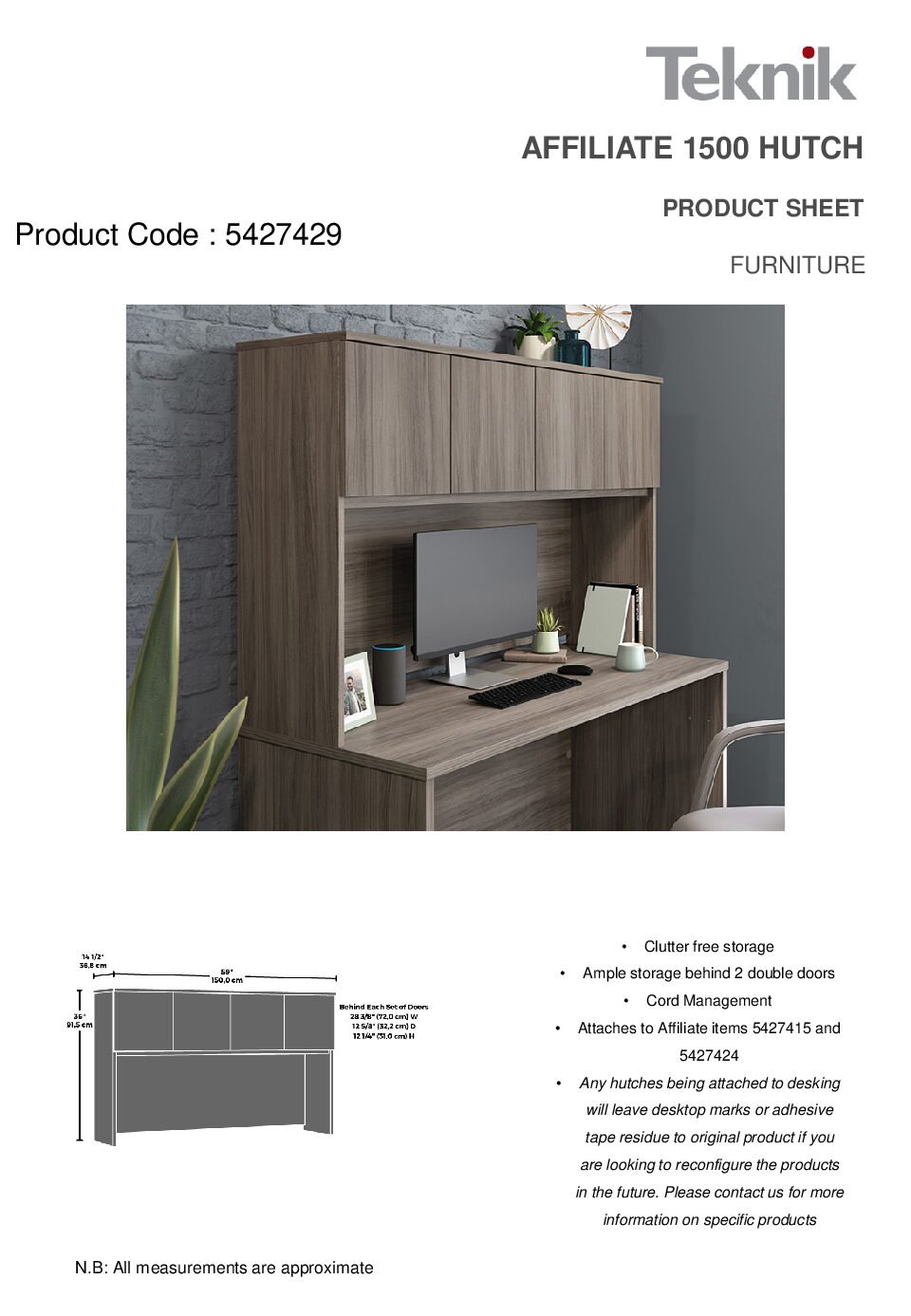 Teknik Office Affiliate 1500 Hutch is a functional and commercial style option for all manner of colour schemes and work spaces. This hutch offers a very durable and efficient solution for creating additional storage for your office needs, keep your current Affiliate desk clutter free.