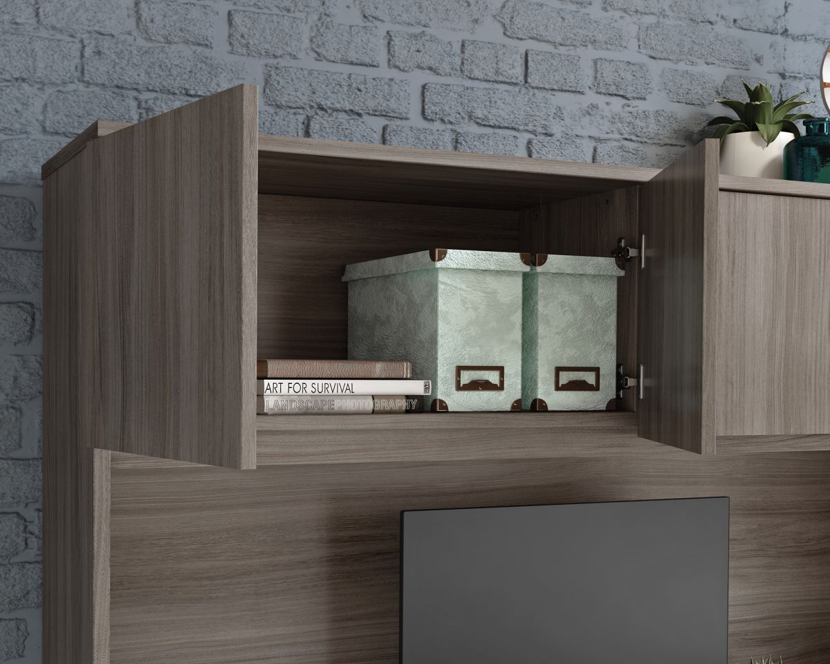 The Hutch comes with a handy grommet hole for easy cord management and has hidden storage behind two sets of double doors, ideal for folders, books and notepads. Beautifully finished in a Hudson Elm effect, this is a perfect match for current Affiliate desking codes:5427415 and 5427424. There are also other matching cupboards, desks, hutches and bookcases within the Affiliate range which will complement this item.