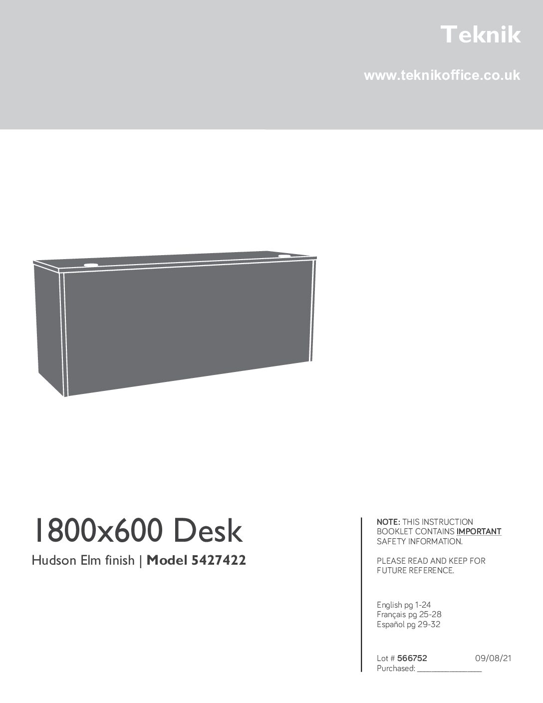 Teknik Affiliate 1800 x 600 Desk Hudson Elm